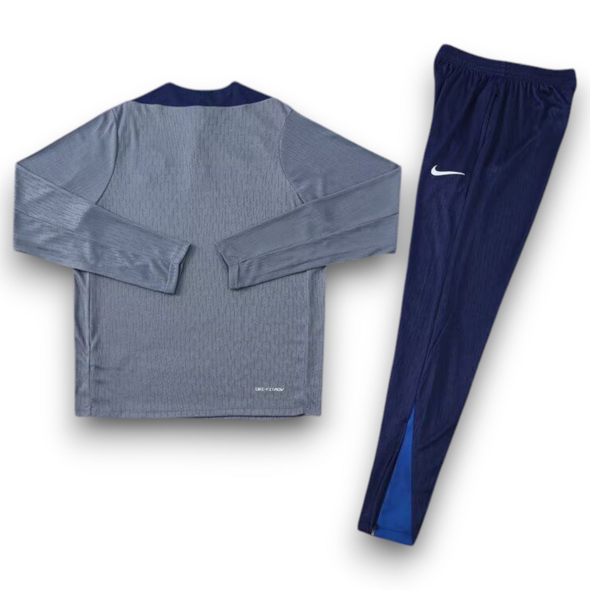 Apoya al París de forma incondicional. Este chándal de fútbol presenta un corte ajustado y un tejido de punto brillante. El cuello alzado de la chaqueta te protege del frío. El pantalón incluye unas prácticas cremalleras en los tobillos para que sea más fácil de poner y quitar. Luce el escudo del club en el pecho y la parte superior de la pernera.